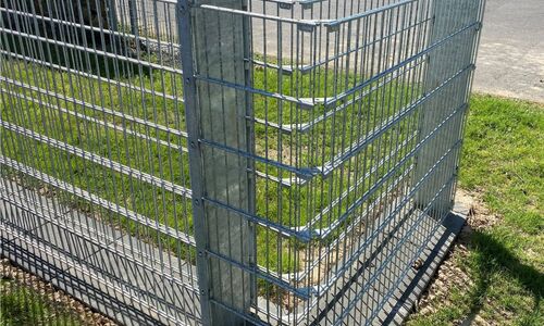 Die Gabionenpfosten werden entweder in den Boden einbetoniert oder mit angeschweißten Bodenplatten auf einem Fundament befestigt. Die Doppelstabmatten werden je Seite mit Abdeckleisten verschraubt und mit Sicherheitsbolzen gesichert.